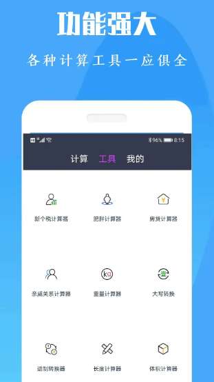 计算机计算器全能王集计算器、亲戚计算器、指南针、房贷计算器、五险一金、进制转换、肥胖计算器、重量计算器、大写转换、长度计算器、体积计算器、字节计算器、面积计算器、温度计算器等为一体,功能强大,方便好用,简单解决各种计算、换算的超级计算器。支持进制转换,二进制、八进制、十进制、十六进制,六十进制,自由转换,支持小数点,感兴趣的朋友不要错过下载。