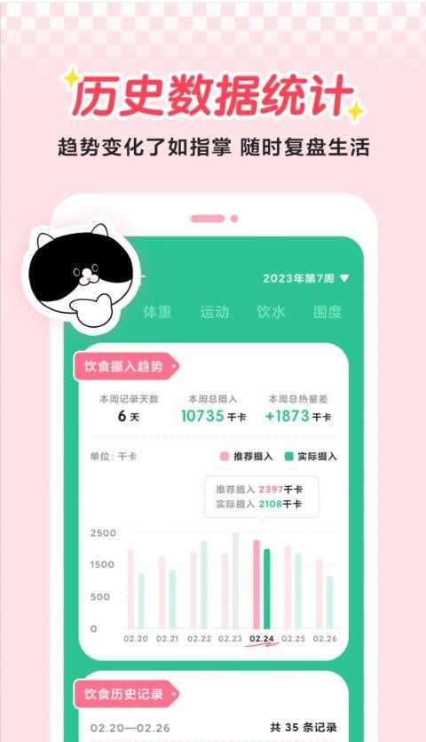 3、智能提醒功能,让您更快速准确地打卡记录饮食情况;