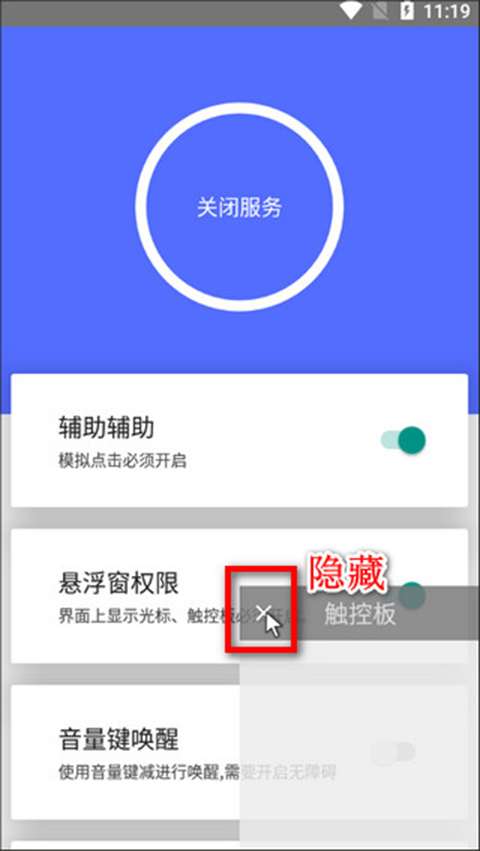 5、隐藏:单击触摸板左上角的“X”,隐藏触摸板。