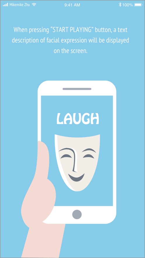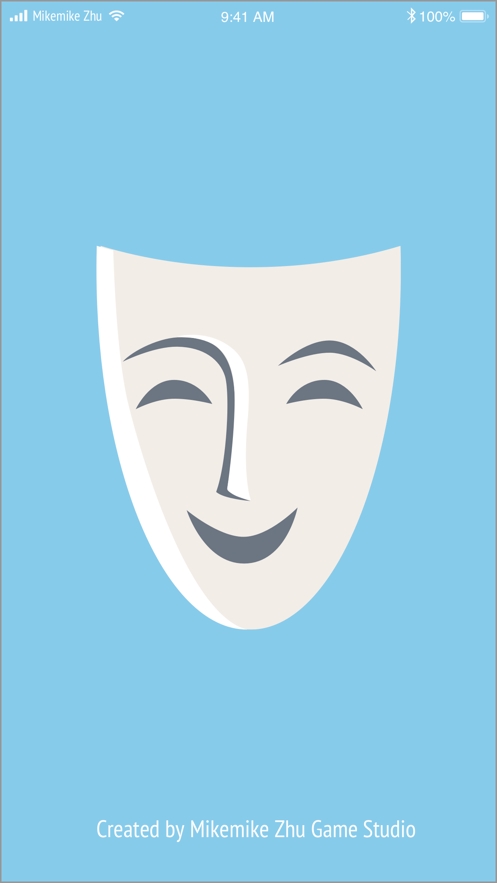 1、画面中的色调背景主色调为蓝色,会有一个巨大的面具屹立在中间,这个面具就是暗示你要表演需要用到的东西。