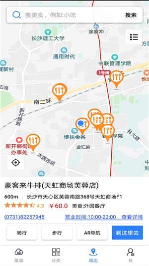 附近的食物:当您找不到要吃的食物时,请通过单击导航查看周围的环境,价格和用餐地点。