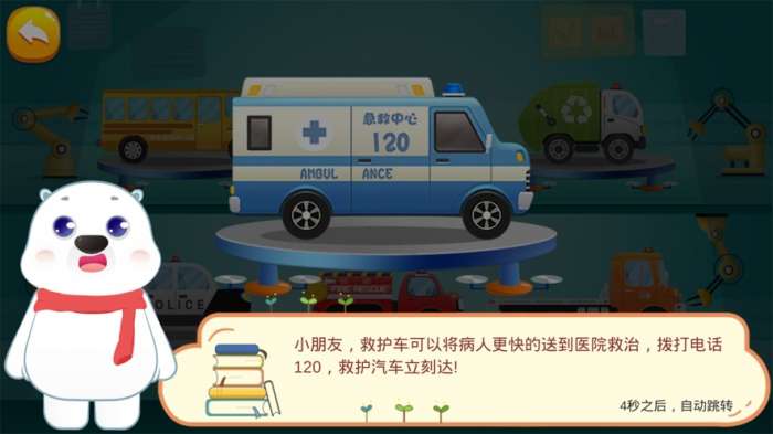 1、每一个小汽车的解锁都会有一个新的剧情动画,有几个卡通人物来以语音的方式和你讲解小知识;
