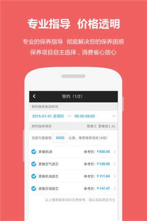 4、专业指导,价格透明,生动的保养说明,彻底解决您的保养困惑。保养项目自主选择,消费省心放心。