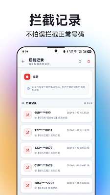 4、无声拦截:您可以设置无声拦截模式,在没有任何提示的情况下自动过滤骚扰电话。