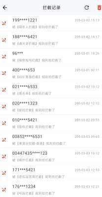 5、完成设置后当骚扰电话出现就会自动进行拦截用户还可以通过拦截记录查看详情。
