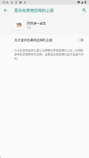 1、在本站下载巴巴博一桌宠软件,同意【允许显示在其他应用的上层】才能使用。