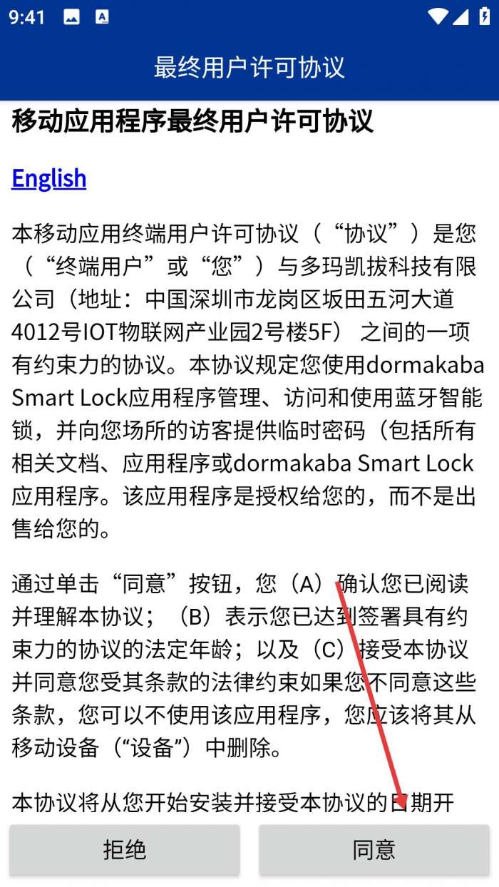 1、打开智能锁APP阅读协议后点击同意,进入我的设备页,查看已关联门锁,开启智能管理体验。