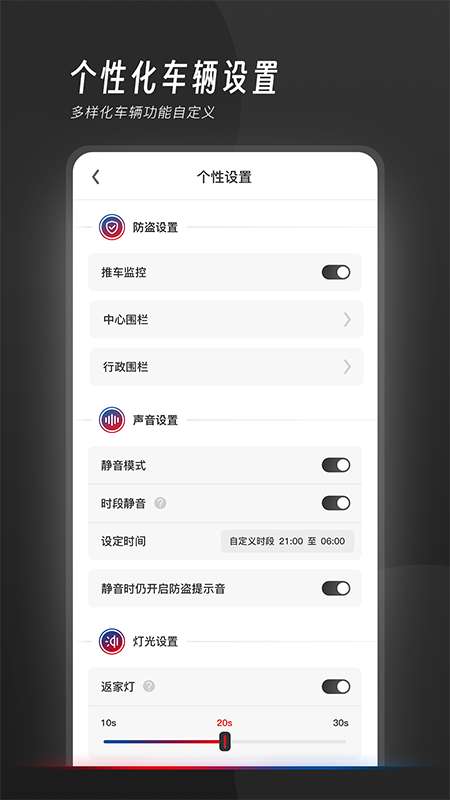 1、您可以通过平台自由管理车辆的声音、灯光等各种参数,从而获得个性化的使用体验。