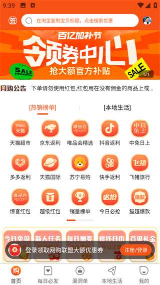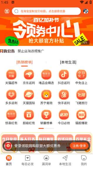 2、进入首页,我们就可以参与各种返利优惠购物。