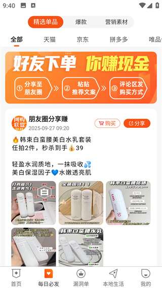 4、点击下方工具栏每日必发,还会有朋友圈分享赚活动,好友下单你赚现金。