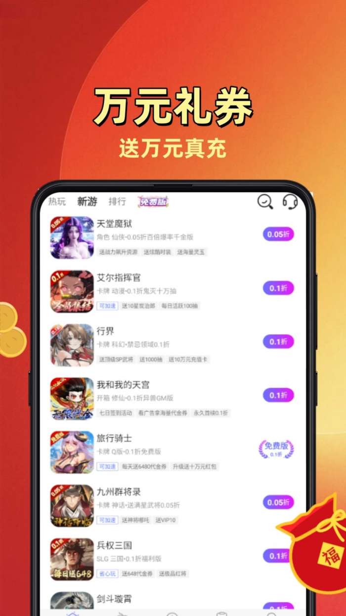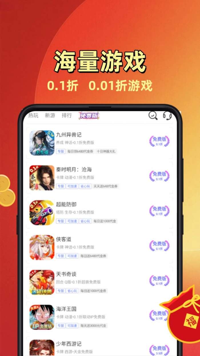 2、手游折扣 海量精品游戏0.05折,0.01折免费玩!