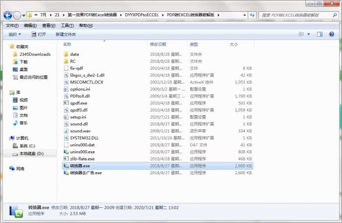 2.解压第一效果PDF转Excel转换器软件,运行“EXE.文件”