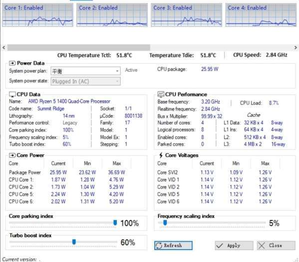 Quick CPU是一款功能强大的CPU性能优化和电源管理工具,提供Core Parking、频率缩放、Turbo Boost、C状态、变速和FIVR Control等等实用功能,最大的优点就是Quick CPU能切实在不超频的情况下(超频伤机),通过自动智能算法调节,达到之前超频才能达到的性能!
