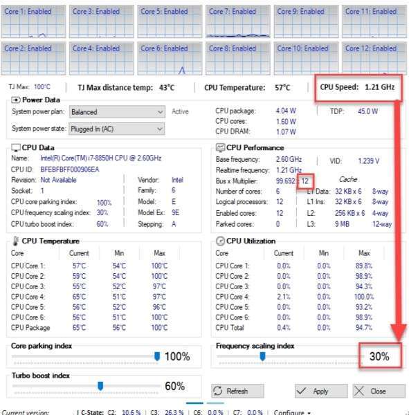 关于频率缩放的特定细节是,即使将索引设置为100%。