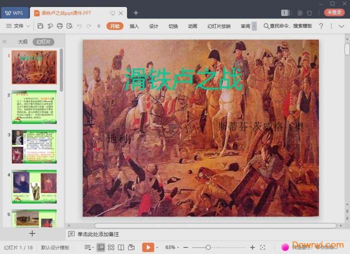 滑铁卢之战免费课件讲的就是战役本身,通过比较理性的分析这场战役。通过课件你可以看到跟多的见解,战役的背景到相应的结果都有比较不错的总结。欢迎来体验!
