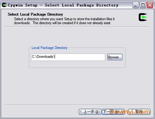 这一步我们可以选择安装过程中从网上下载的cygwin组件包的保存位置,选择完以后,点击“下一步”,