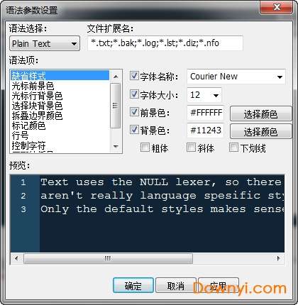 另外,Ulipad支持语法高亮,如果需要设置的话,可以选择“文档”->“语法参数”来设置:
