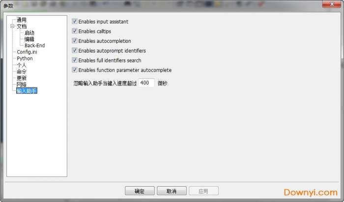 另外这里要非常注意一点,“输入助手”一定要设置,否则Ulipad的自动提示很缓慢: