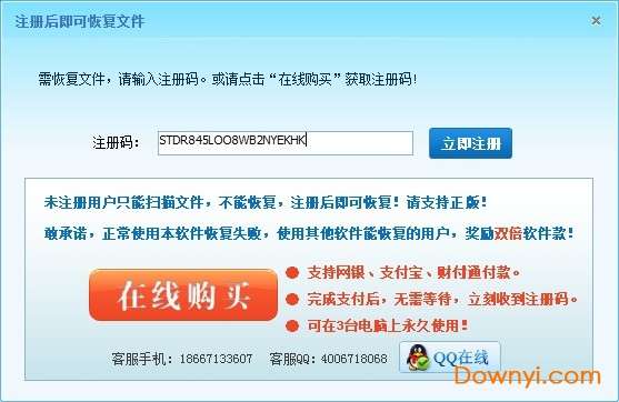 在线购买注册码,购买好一分钟即可完美恢复数据,并享受工程师免费技术支持!