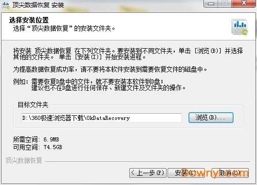 选择一个盘存放需要恢复出来的文件,然后单击下一步。