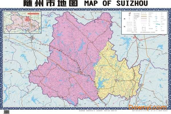 湖北随州地图高清版 中文免费版湖北随州地图高清版是一款由湖北省地图院编制而成的湖北地图,制作比例尺为1:215000,县城、省级界、地级界、主要交通干道、湖泊山川等等展示十分详尽,对于想要了解该市的朋友来说非常难得。当易网还提供了中国地图、亚洲地图等丰富地图资源!随州介绍湖北省下辖地