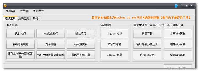 windows xp电脑维护工具箱是集系统的设置,优化、修复、网络的共享、系统安全防御、个人的隐私于一体的装机维护工具。该工具体积不是很大,但是功能很齐全,除了常规的系统维护之外、更有ie主页的锁定、程序禁止运行、屏蔽标记网址、文件夹的加密、个人资料以及各种账号转移等功能。其中网址屏蔽功能会帮你屏蔽带有病毒的网页,高级用户设置以及更多设置更能满足用户们的需求,需要的小伙伴赶紧来下载吧。