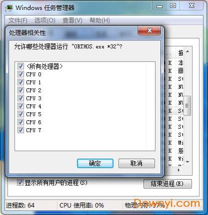 选中其中的“cpu 0”和“cpu 1”,然后确定,这样第一个orthos进程就设置好了。