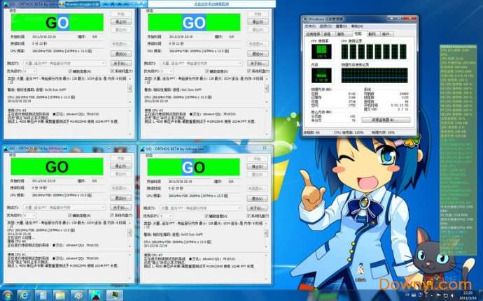 设置好了以后,点每个orthos窗口右侧的“开始”就行了,这时能看到任务管理器里的cpu使用率是100%,测试时间至少30分钟。