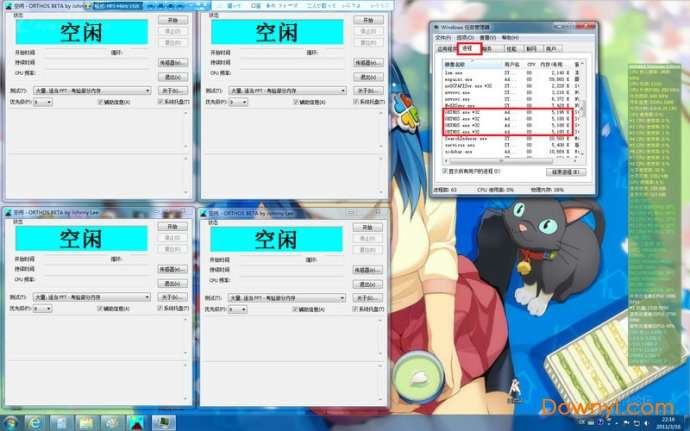 然后打开“任务管理器”,在“进程”选项卡里找到刚才打开的orthos进程,如下图红框: