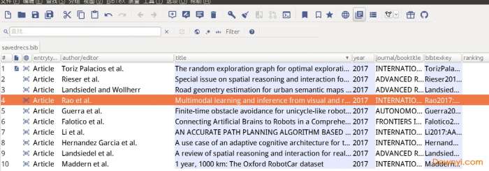 2.6 把导出的bibtex导入到数据库中,文件-》导入到当前数据库(快捷键ctrl+i),选择导出的文件,效果如下