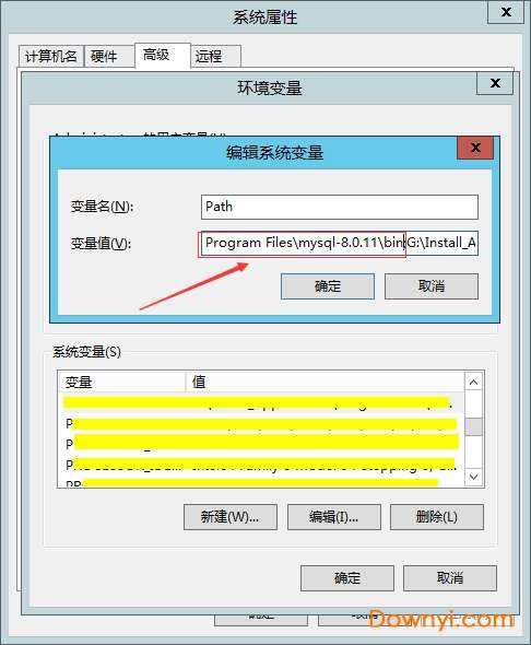 2、配置环境变量,将mysql目录下的bin目录添加到系统变量path中,如下图: