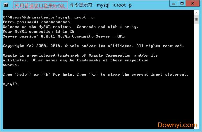 8、mysql密码修改完成后,退出超级管理员,使用普通登录,如下图: