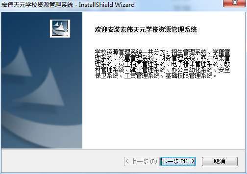 1、宏伟天元学校资源管理系统最新版解压缩后点setup,随后一直点下一步,直到完成;