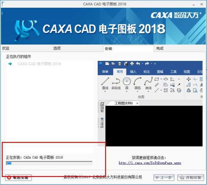 5、出现正在安装的进度条,请耐心等待所有项目文件的安装,结束以后会有相关的提示