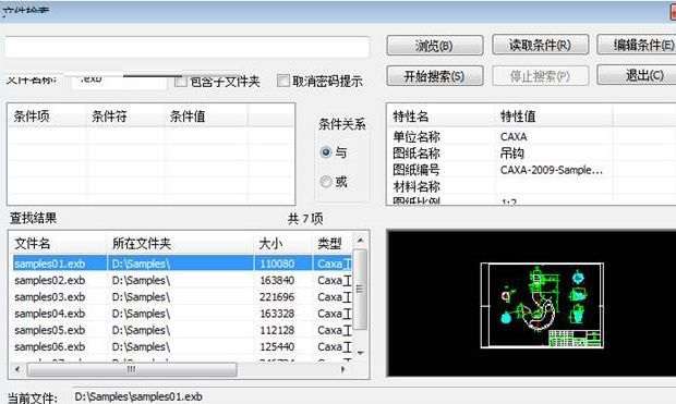 属性条件:显示标题栏中信息条件,指定条件之间的逻辑关系(与和或)。标题栏信息条件可以通过【编辑条件】激活编辑条件对话框编辑。