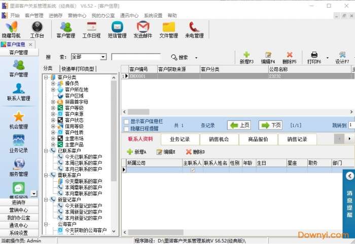 集管理客户档案、销售统计、业务往来于一身的管理软件,适用于大多数的中小型企业。以管理者的思想,在了解行业销售状况下,凝聚客户关系,提升资源价值,将潜在客户转变为现实客户从而迅速的提升销售量。让企业在投入较少资金的情况下,轻松享受到使用管理软件来改进企业及其客户之间关系的目的。
