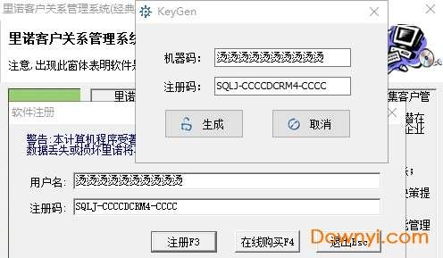 9、将用户名拷贝到注册机中生成注册码,然后将注册码拷贝到软件中,点击注册