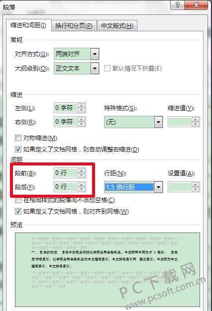 3、之后就会打开段落设置的窗口,可以分别对段落前后间距和段落中的行距进行设置,设置完成后点击下方的“确定”。