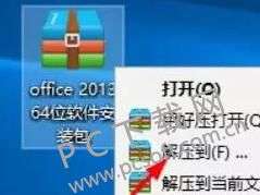 1、从PC下载网下载Office2013软件包,将压缩包解压后,打开解压得到的文件夹,使用鼠标左键双击打开安装文件。