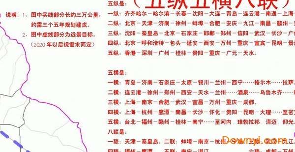 三横:上海-南京-合肥-武汉-宜昌-恩施—重庆-遂宁—成都……格尔木……库尔勒……喀什。