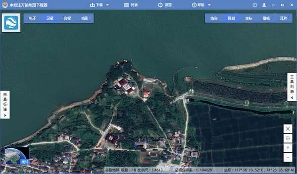 自行下载:卫星影像数据、地名路网数据和高程数据可以用《水经注万能地图下载器》自行下载。