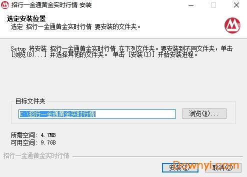 2、软件默认安装在“c:\招行一金通黄金实时行情”,如果用户修改请通过后方的“浏览”按钮手工指定,然后点击“安装”;