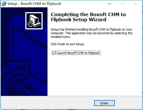 8、现在Boxoft CHM to Flipbook已经安装到你的电脑上,点击finish退出安装程序