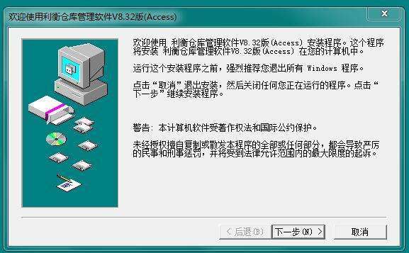 1.在pc下载网,下载利衡仓库管理系统最新版软件包,解压,运行“EXE.文件”