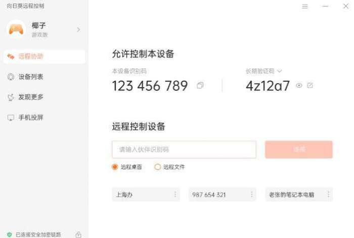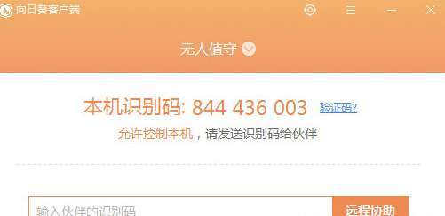 2、登陆后可以看到客户端界面有一串识别码。当需要好友协助时,只要对方安装有向日葵客户端,输入识别码后即可完成远程控制。使用自己的手机控制电脑,那就更为方便了,需要在手机客户端登录同一账号即可。