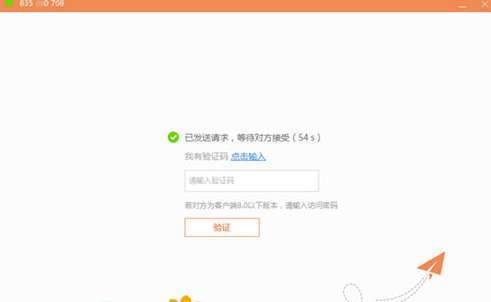 3、输入共享屏幕电脑的验证码,点击“验证”按钮进行连接。