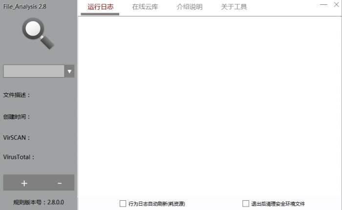 File Analysis(行为分析工具)官方版是一款专业的行为分析工具(网络操作实现抓包功能)。File Analysis最新版工具支持多个进程同时运行分析,不仅能够记录行为,还能使程序在安全环境下运行。File Analysis官方版支持多个进程同时运行,增加了分析工作效率,节约更多的操作时间。
