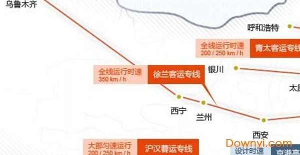 途径主要站点:徐州东站—商丘站—郑州站/郑州东站—洛阳龙门站—西安北站—宝鸡南站—兰州西站