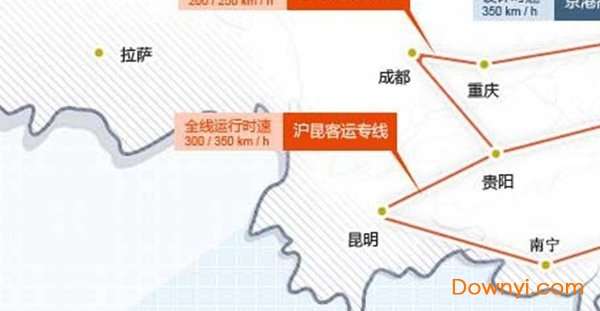 途径主要站点:上海虹桥站—杭州东站—南昌西站—长沙南站—贵阳北站—昆明南站