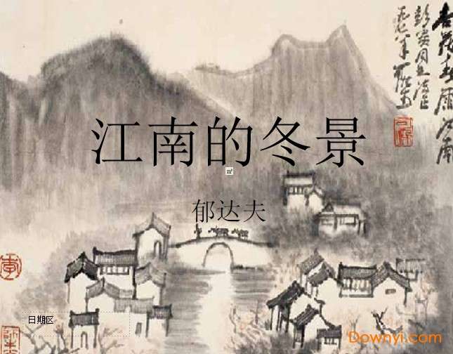 江南的冬景郁达夫ppt是小编特意为大家带来的学习课件,可以供教师们教学使用也可以供学生们进行学习,全篇供有20张,让大家感受到江南的美,不仅仅体现在风景上,更体现在人文风情上。